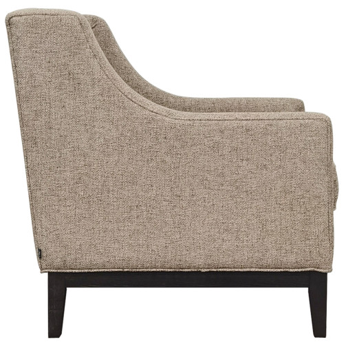 Introducing Dark Taupe, a new shade in our popular Theodore collection. This armchair is upholstered in a tightly woven fabric with taupe and beige threads, offering a soft, textured look. It features deep buttoning, piped detailing, and a comfortable deep seat cushion, supported by a solid deep brown wooden frame. Simple self-assembly required. Also available in Forest Green, Ivory, and Warm Grey.