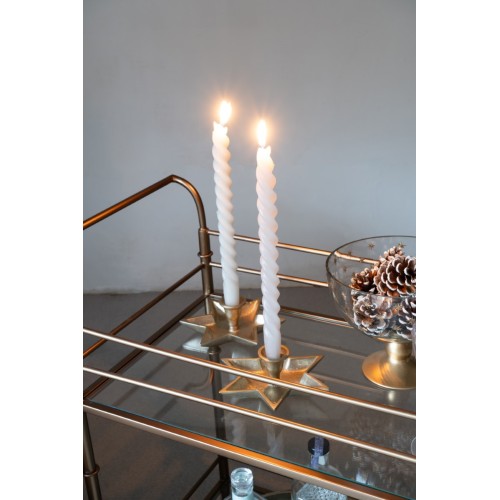 Bring a touch of elegance to your home with the Laura Ashley Champagne Gold Star Candle Holder Set. Crafted from cast aluminium with a sophisticated champagne gold finish, these versatile star-shaped holders are perfect for dinner candles. Their timeless design makes them a beautiful addition to your décor, whether for everyday use or special occasions. Also available as a set of 3 small.