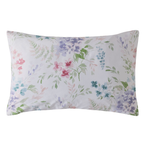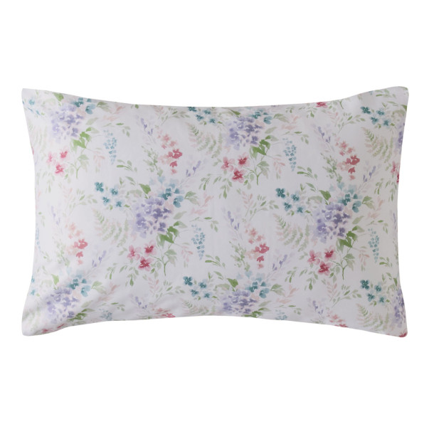Aulden Flowers Bed Set printed with hydrangea flowers and soft greenery, in 220 thread count 100% cotton sateen. Small flower reverse.