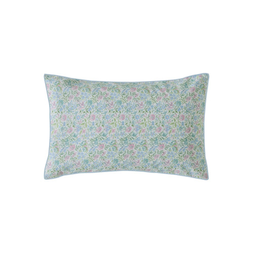 Sherston Bed Set in poppy and fuchsia floral design. Gouache styling is paired with a matching check reverse on a 100% washed cotton base with a soft blue flat piping.