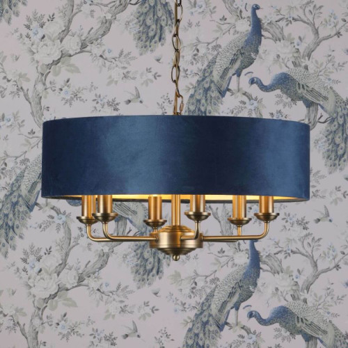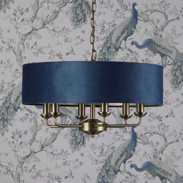 Laura Ashley Sorrento 6 Light Pendant Matt Antique Brass & Blue Shade