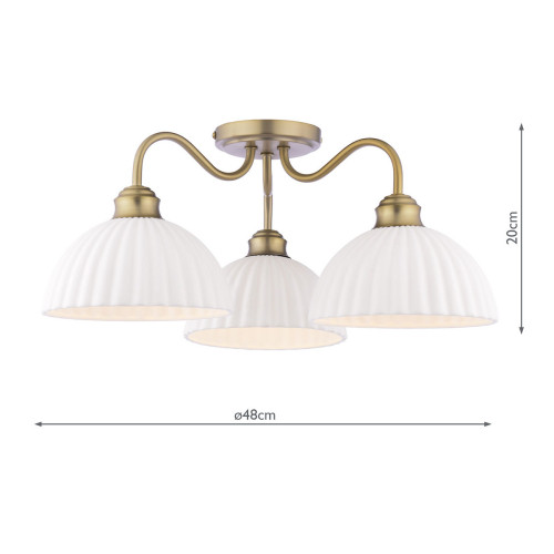Elevate any room with the Laura Ashley Durford 3 Light Semi Flush Ceiling Light. Finished in matte antique brass with porcelain shades, it's perfect for living rooms or bedrooms with lower ceilings, adding warmth and sophistication.