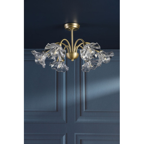 Add a vintage touch to your living room or bedroom with the Laura Ashley Kerswell 6 Light Semi Flush Ceiling Light. Flower-shaped glass shades and matte antique brass finish create a cosy glow and classic British charm.