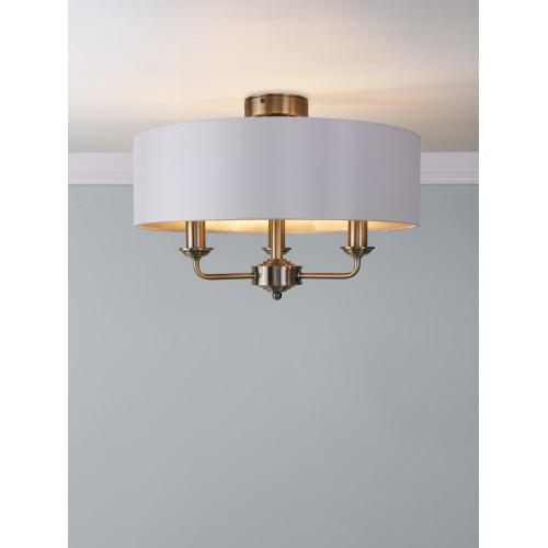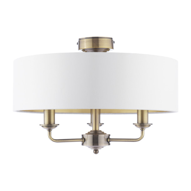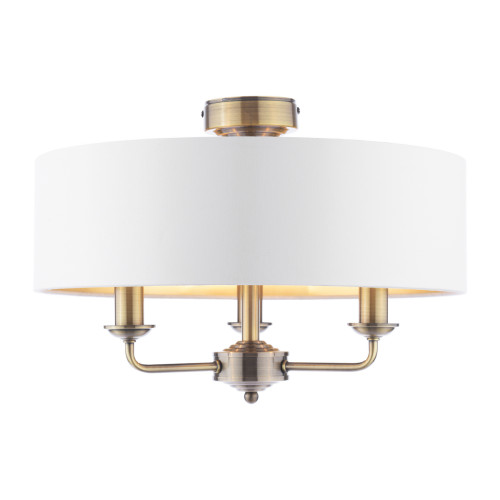 Laura Ashley Sorrento 3 Light Semi-Flush Antique Brass With Ivory Shade