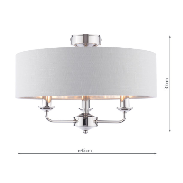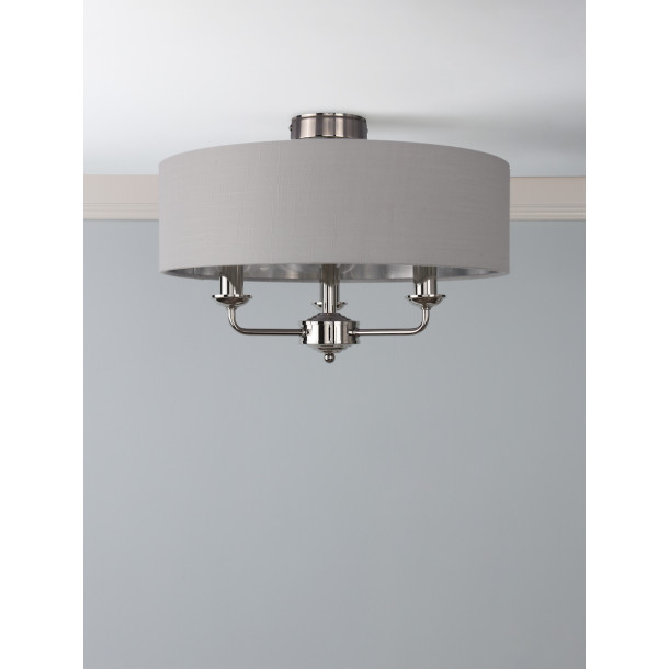 Laura Ashley Sorrento 3 Light Semi-Flush Polished Nickel With Silver Shade