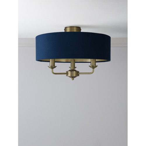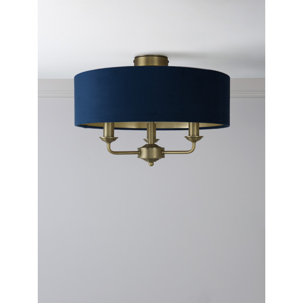 Laura Ashley Sorrento 3 Light Semi-Flush Matt Antique Brass With Blue Shade