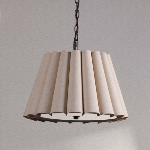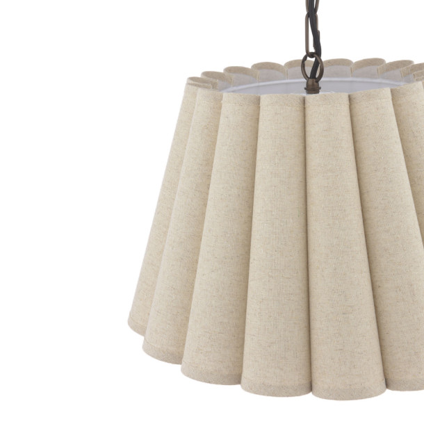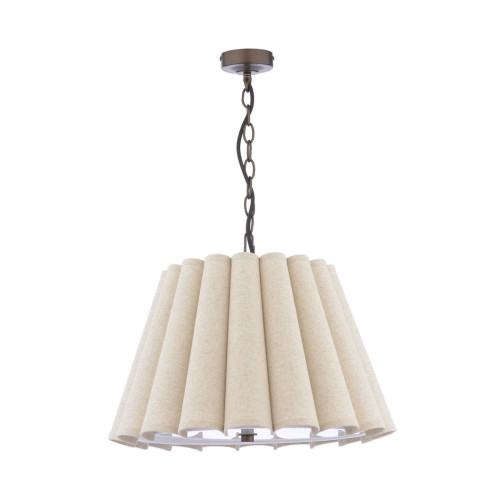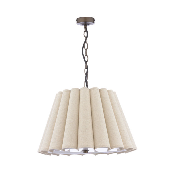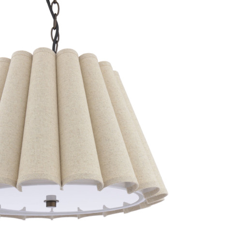 Two-light pendant lamp with antique bronze finish and linen shade. Perfect for stylish lighting in dining or living areas.
