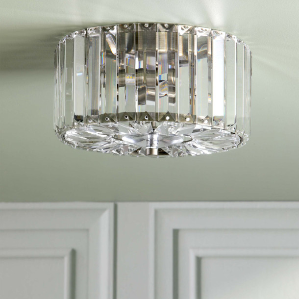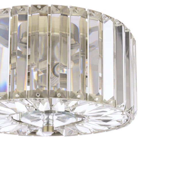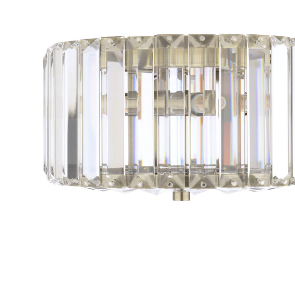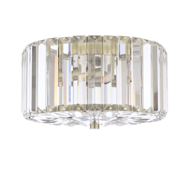 Flush lamp with antique brass finish and cut glass. Perfect for small spaces with classic style.