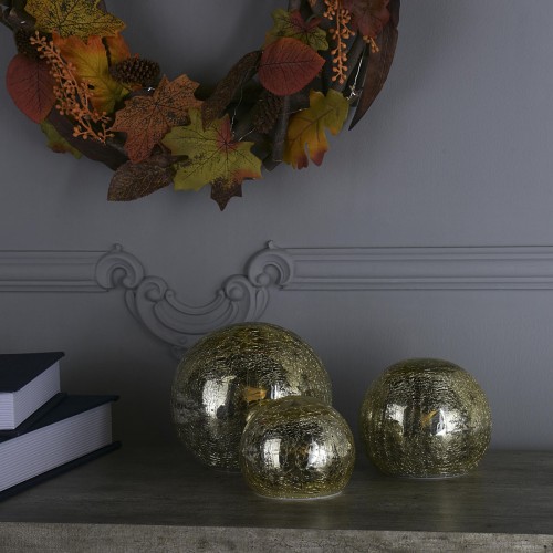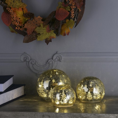 Set of 3 Gold Tone Glass Lit Christmas Ornaments by Laura Ashley. Este adorno navideño mide Pequeño: Diámetro 10cm; Mediano: Diámetro 12cm; Grande: Diámetro 15cm y aporta un toque romántico y de época a tu hogar. Requiere 2 x AAA y 6 x AA no incluidas. 100% Cristal Perfecto para decorar cualquier estancia con elegancia y calidez, fabricado con materiales de calidad que garantizan durabilidad y seguridad durante toda la temporada navideña.
