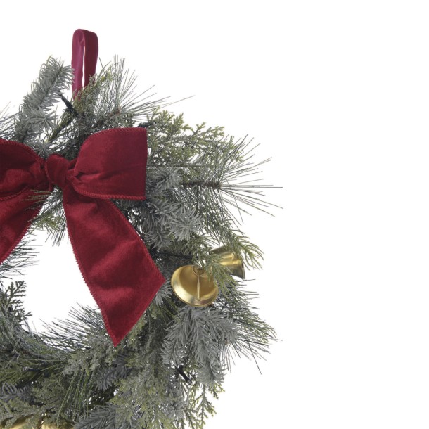 Green 40cm Pre-lit Wreath with Bells by Laura Ashley, preiluminado, ideal para crear un ambiente navideño romántico y acogedor. Requiere 3 x AA no incluidas. Función temporizador. 65% Plástico, 30% Metal, 5% Poliéster