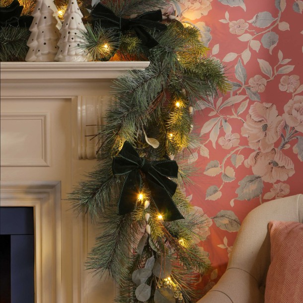 Green 180cm Pussy Willow Pre-lit Christmas Garland by Laura Ashley