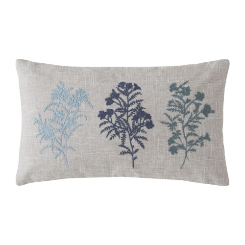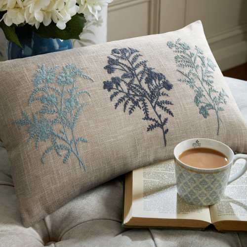 Tenby cushion with Floral Silhouettes design, in Sea Blue tones. Measures 30cm x 50cm. By Laura Ashley