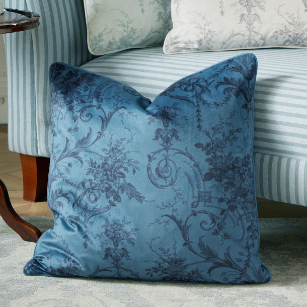 Tuileries cushion with Classic design, in Midnight Blue tones. Measures 50cm x 50cm. By Laura Ashley
