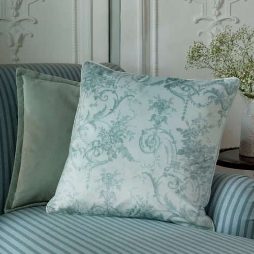 Tuileries cushion with Classic design, in Sage Green tones. Measures 50cm x 50cm. By Laura Ashley
