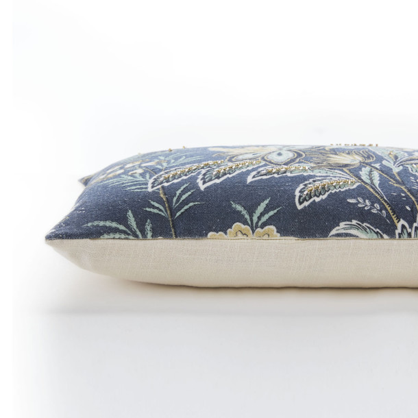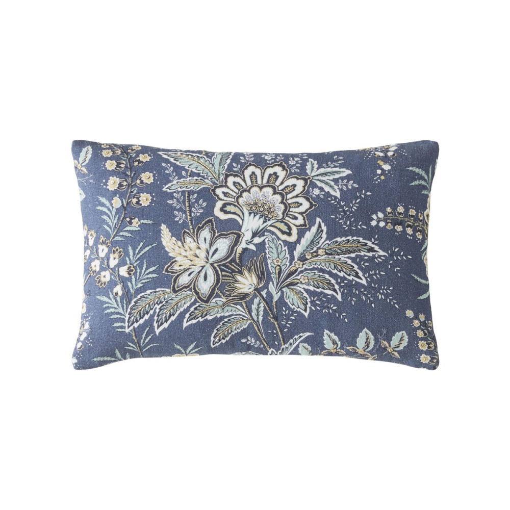Marlbrook cushion with an embroidered exotic flower design in deep sea blue tones. Measures 30cm x 50cm. By Laura Ashley