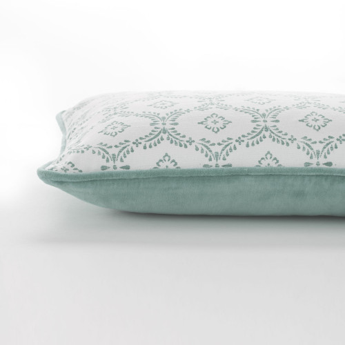 Norton cushion with a classic medallion design in sage green tones. Measures 30cm x 50cm. By Laura Ashley