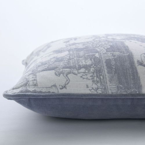 Cushion with blue country print, inspired by 18th-century French scenes. Adds a vintage and elegant touch to your living room or bedroom.