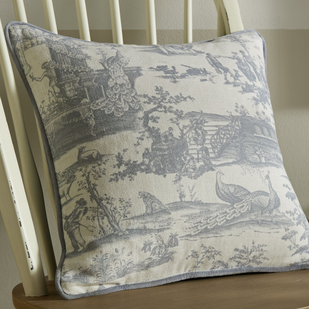 Braysmith Toile Chambray Blue Cushion 45cm x 45cm, Laura Ashley