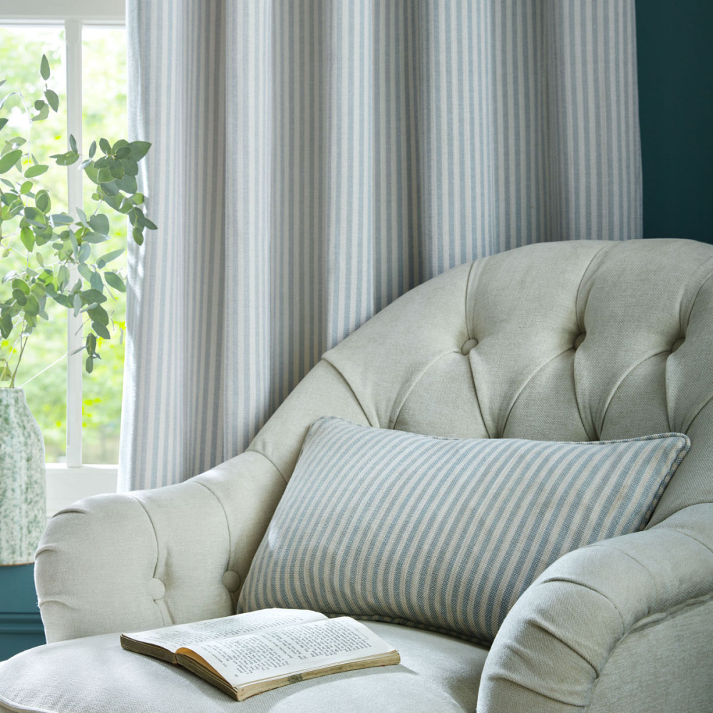 Cornish Chenille Stripe Slate Blue Cushion 30cm x 50cm, Laura Ashley