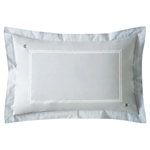 Bees Bed Set printed with Original bee motifs on a soft blue background , in 100% Cotton. 200 thread count percale.. Reverse Blue stripes.