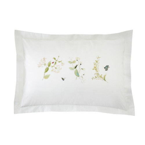 Wild Floral Bed Set printed with Butterflies and dragonflies fluttering over leaves and wildflowers , in 100% Cotton percale. 200 thread count.. Reverse Stripes.