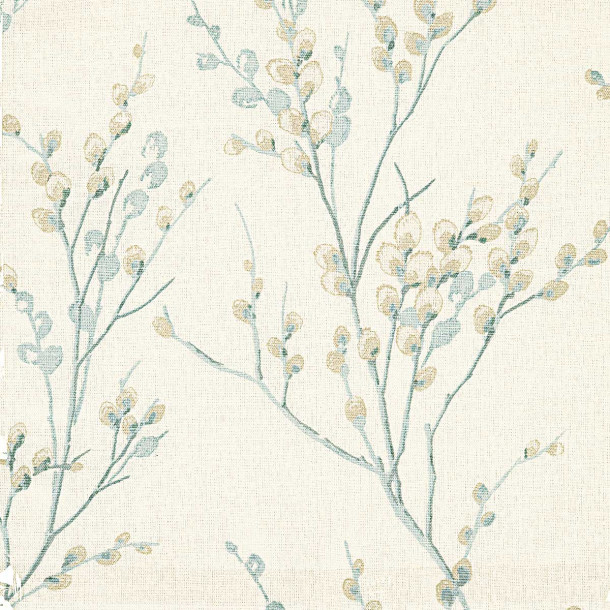 Cotton Branch Fabric in Off-White and Greenish Blue flower.