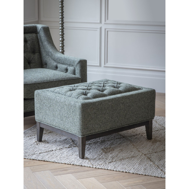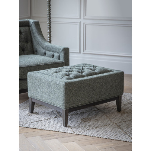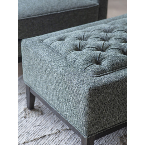This buttoned stool in Forest Green complements our popular Theodore range. The woven fabric’s green and dark grey threads bring a natural, textured finish, while deep buttoning and piped detailing add character. It sits on a solid deep brown wooden frame and requires simple self-assembly. Also available in Dark Taupe, Ivory, and Warm Grey