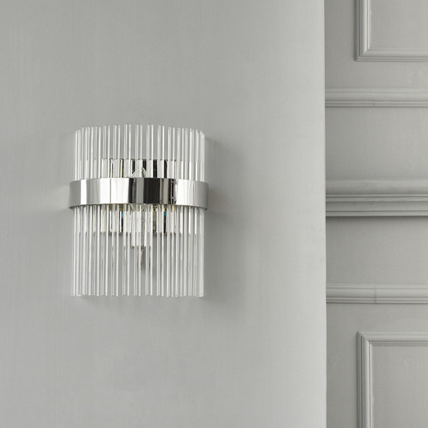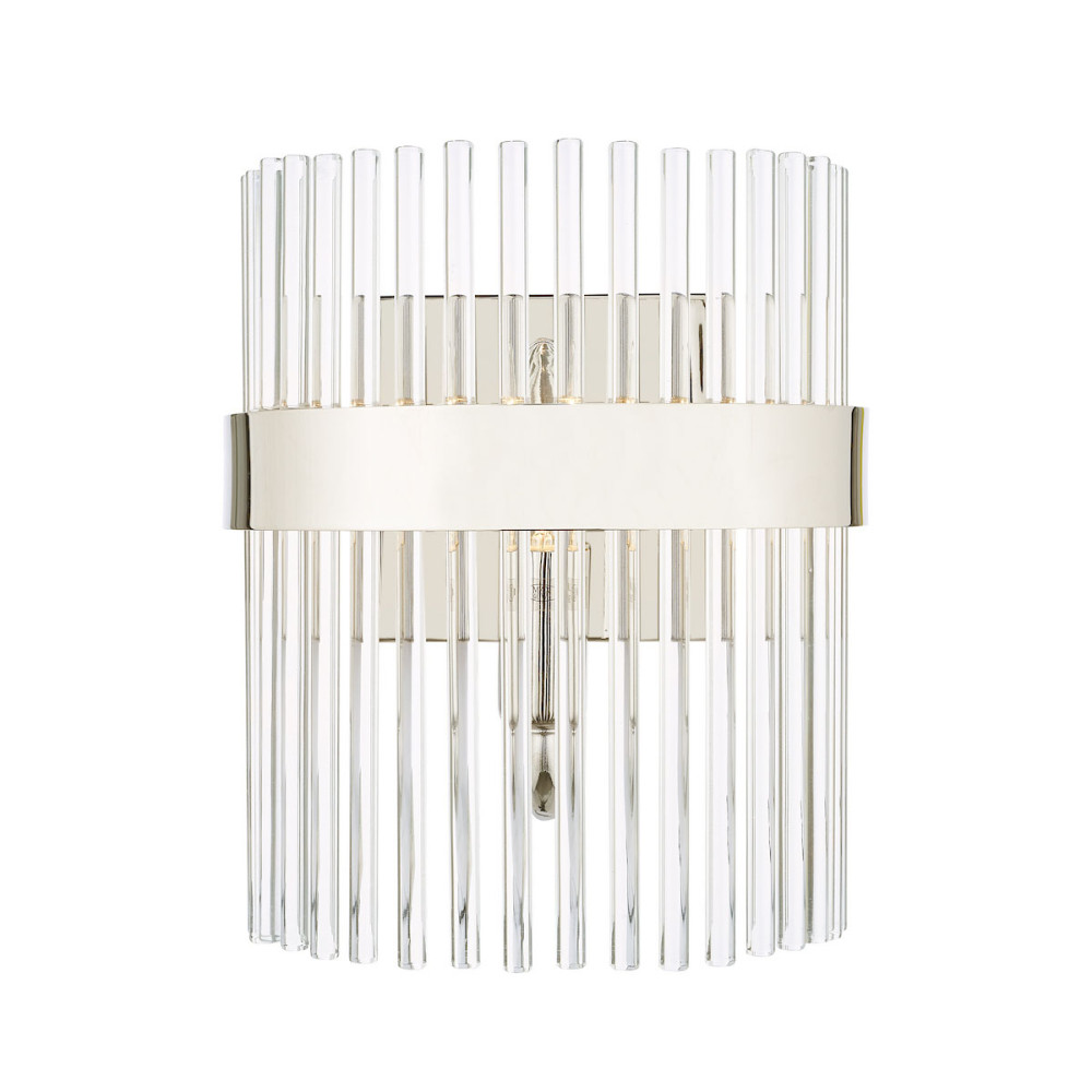 Wall light with glass rods and brass base, a blend of classic and modern style. Perfect for hallways and entrances.
