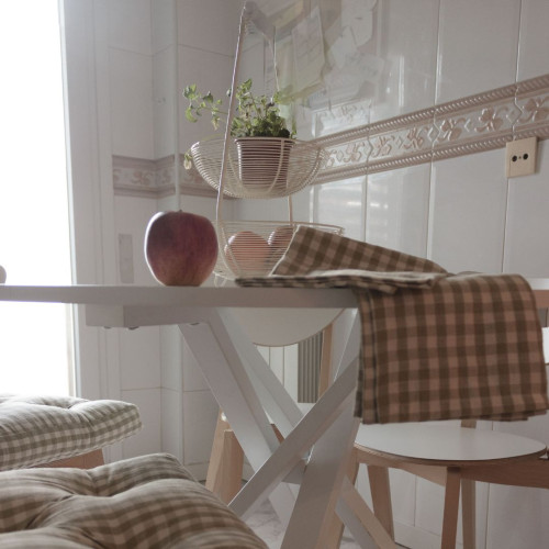 Set of 2 printed cotton kitchen towels with a beautiful light olive green gingham print.