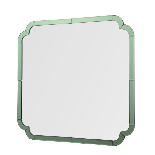 Square mirror with green glass edge, blending modern style and vintage flair. A bold accent for any space.