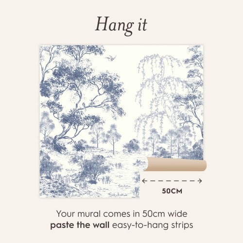 A wonderful printed wall mural in which a sketch of beautiful trees display their beautiful branches in blue shades design, to fit with a unique effect in any room of your home.
