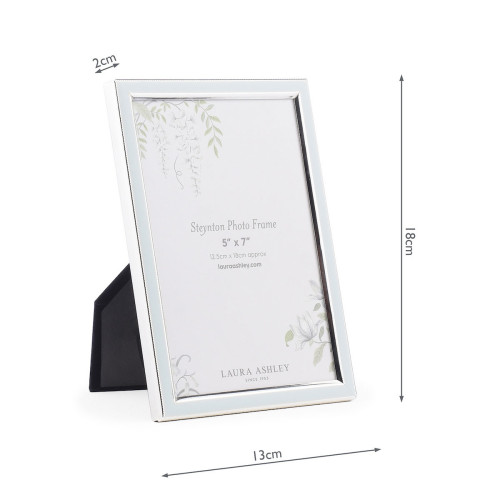 This Laura Ashley 13 x 18 cm photo frame in pale blue and silver is ideal for bedside tables or shelves. Perfect for framing your favourite photos with style and elegance.