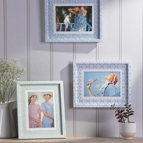 Blue frame with soft floral accents, ideal for family pictures or romantic portraits.