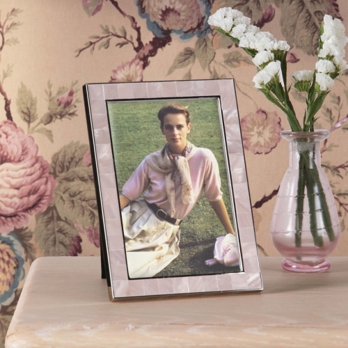 Pink frame with mother-of-pearl details, perfect for wedding photos, celebrations or tender moments.