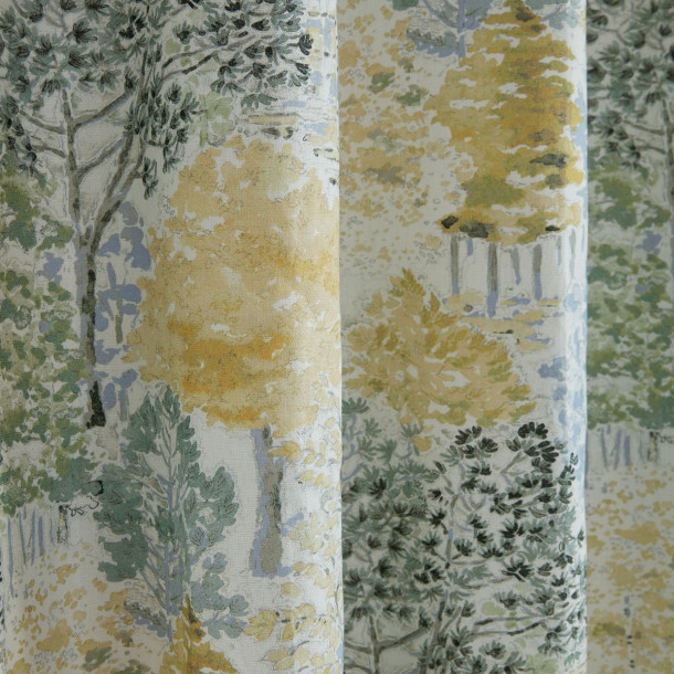 Bernwood Ready Made Curtains, Serene Forest Design, Yellow Ochre. Eyelet Header and Standard Lining. Various Sizes Available. By Laura Ashley.