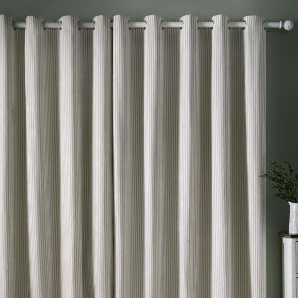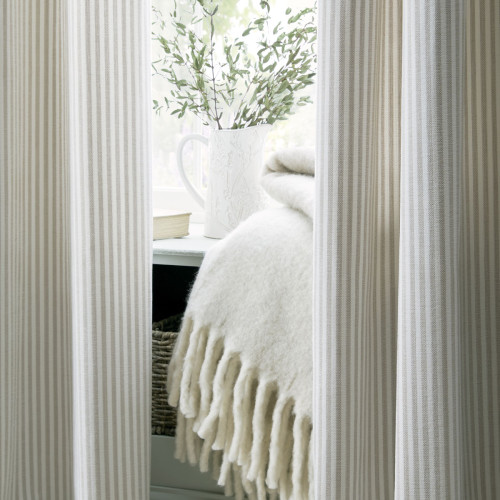 Ready made curtains with a soft natural stripe design, perfect to add a modern yet elegant touch to your living room or bedroom. Fully lined and easy to hang with eyelets.