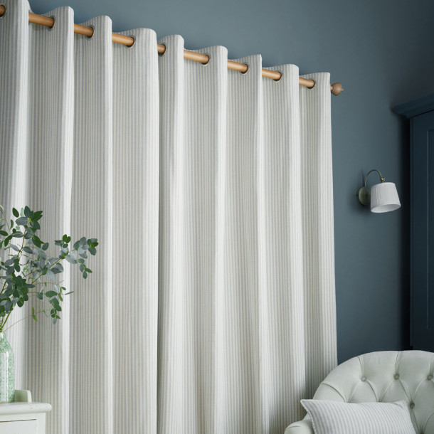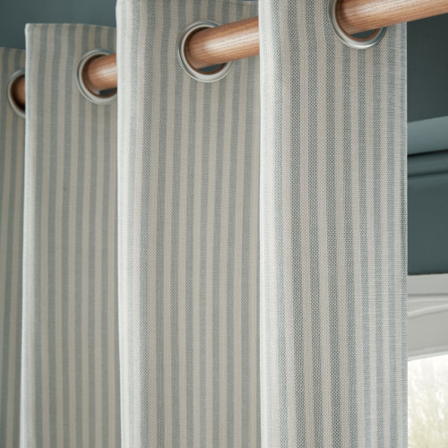 Striped curtains in slate blue tones, perfect for adding elegance and calm to any room. Fully lined and ready to hang with eyelets.