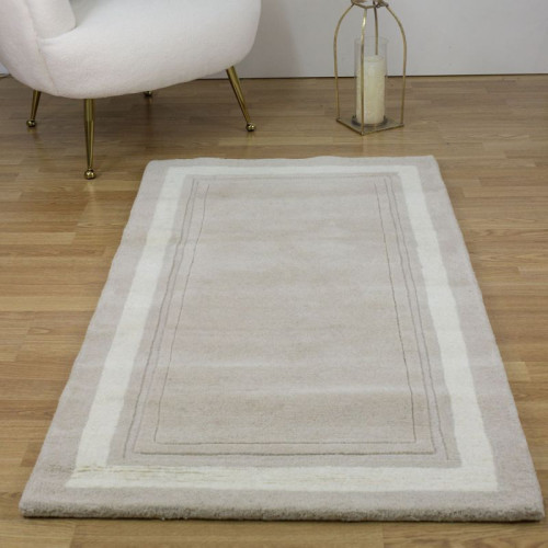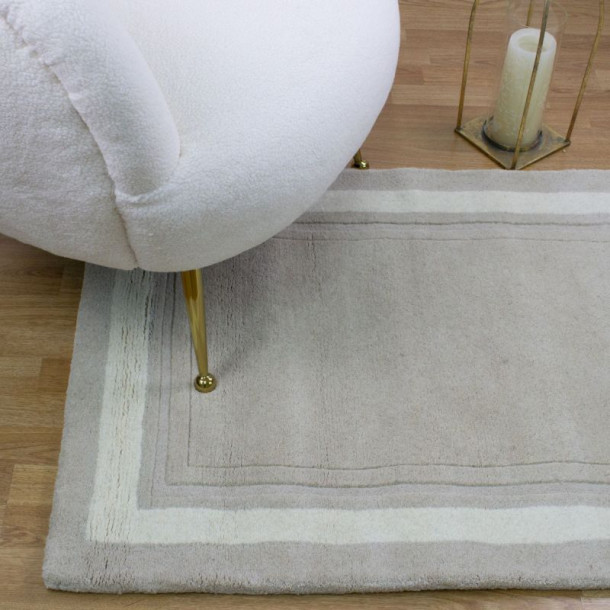 <p>Natural wool rug, in hazelnut beige, with a classic design and a contrasting neutral center border.</p><p>Select size.</p>
