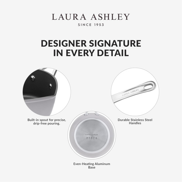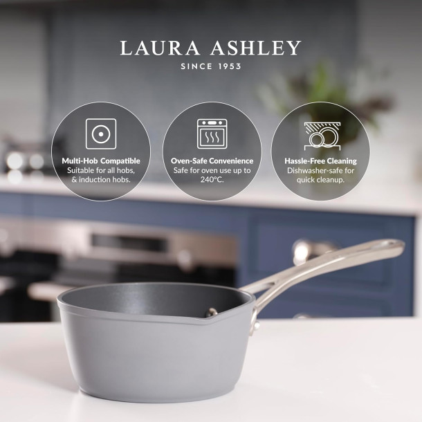 Elegant Design for Your Kitchen: Add a touch of timeless British style with the Laura Ashley small milk pan. Its sophisticated design makes it a beautiful addition to your kitchen and perfect for serving straight from the stovetop.