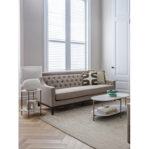 Now available in Dark Taupe, this stylish three-seater sofa extends our beloved Theodore collection. Upholstered in a woven fabric with warm taupe and beige tones, it features deep buttoning, piped edges, and a spacious deep seat cushion. Supported by a solid deep brown wooden frame, the sofa measures 200cm in length and requires simple self-assembly. Also available in Forest Green, Ivory, and Warm Grey.