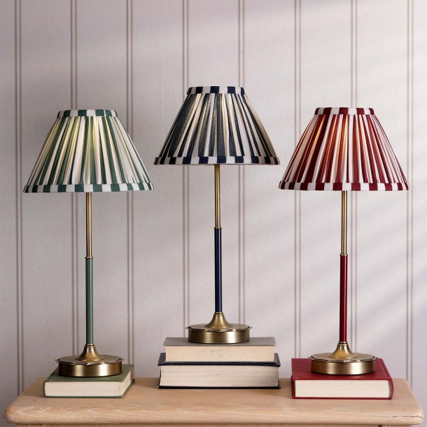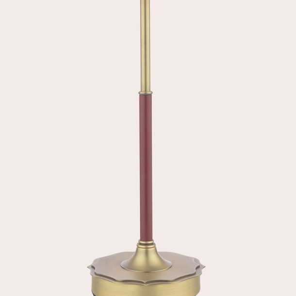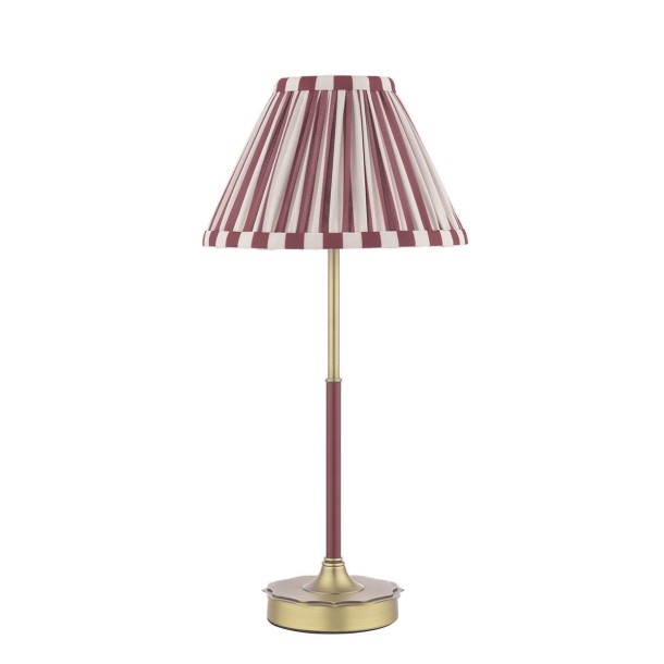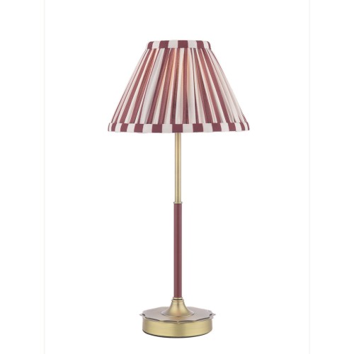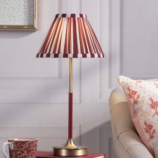 The DENWICK table lamp in matt antique brass with claret shade blends vintage charm with bold color. Compact yet stylish, it adds warmth and sophistication to any console or side table.
