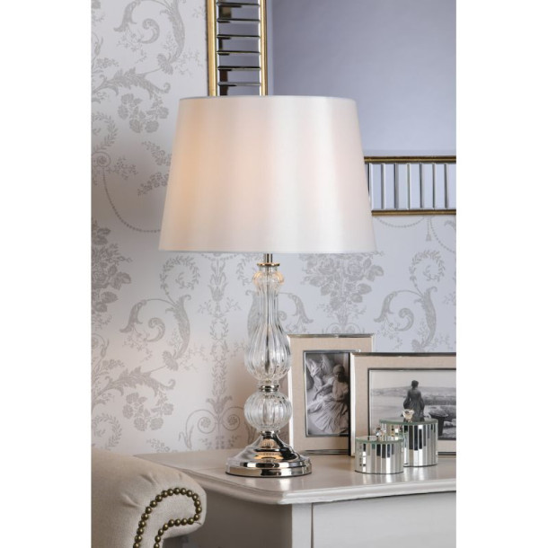 Extras:Faux Silk Shade/Ribbed Glass/Polished Nickel
