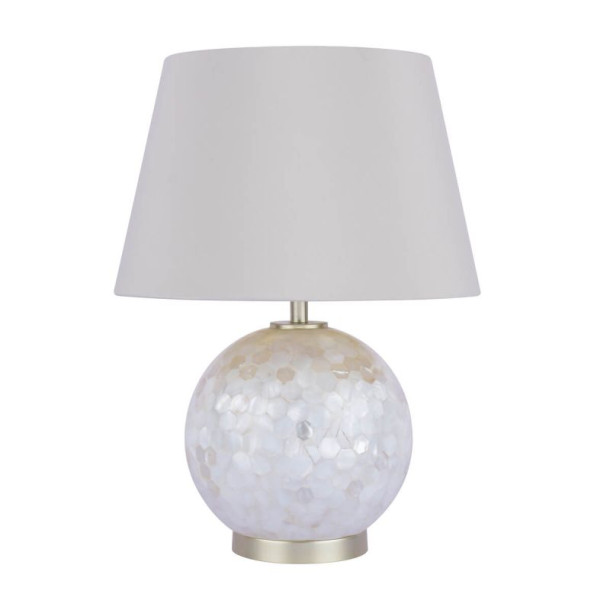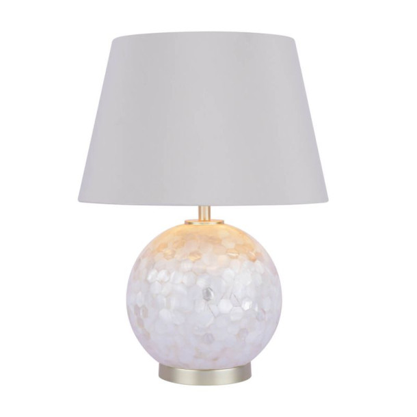 Extras:White And Silver Mother Of Pearl And Linen Shade With Champagne Metal And Shade Inner