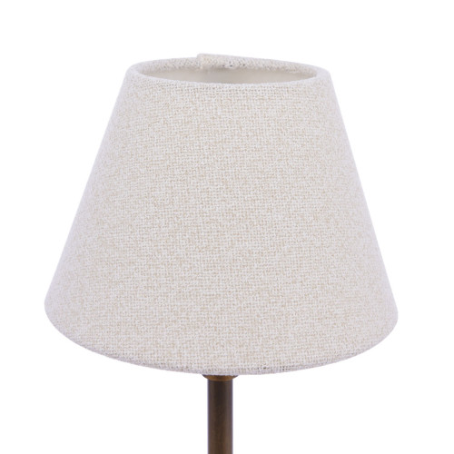 The Laura Ashley Denston Table Lamp features a boucle fabric shade in warm cream cotton and antique bronze finish. Ideal for bedside or end tables, creating a cosy atmosphere.