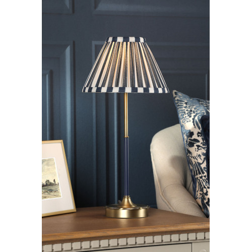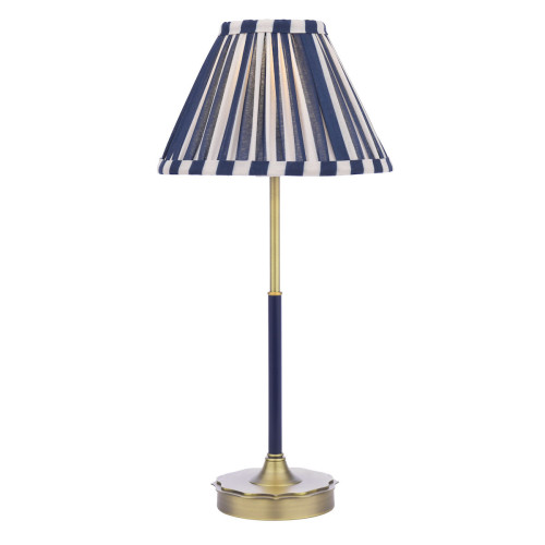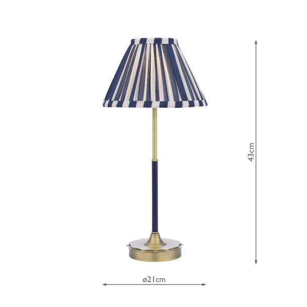 The Laura Ashley Denwick Table Lamp, with navy and cream striped shade and antique brass base, offers a classic yet contemporary look. Perfect for bedside tables, end tables, or consoles.