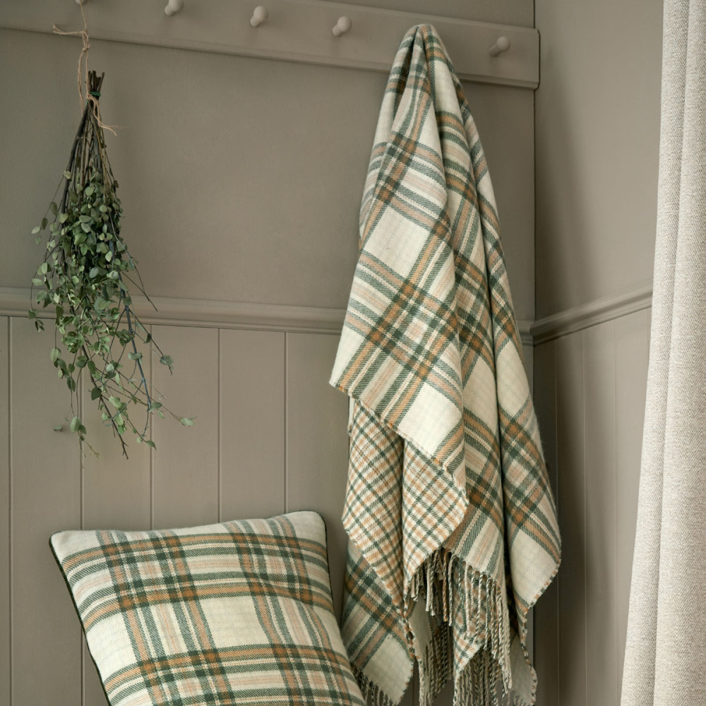 Padbury Check Olive Throw 150cm x 200cm, Laura Ashley