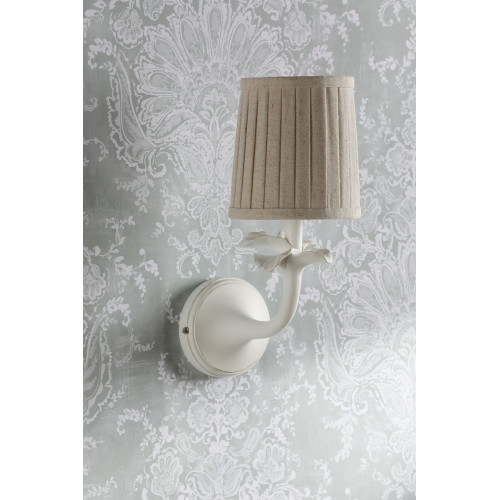 The Laura Ashley Eleni 1 Light Wall Light, with pleated fabric shade in oatmeal and floral pattern, adds a refined touch to any living room or bedroom. Perfect for bedside illumination.