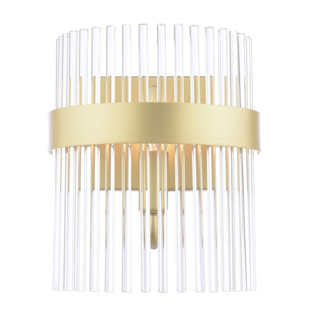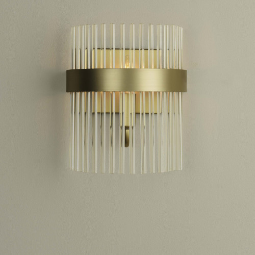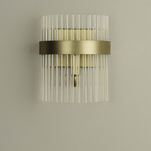 Wall light with glass rods and brass base, a blend of classic and modern style. Perfect for hallways and entrances.
