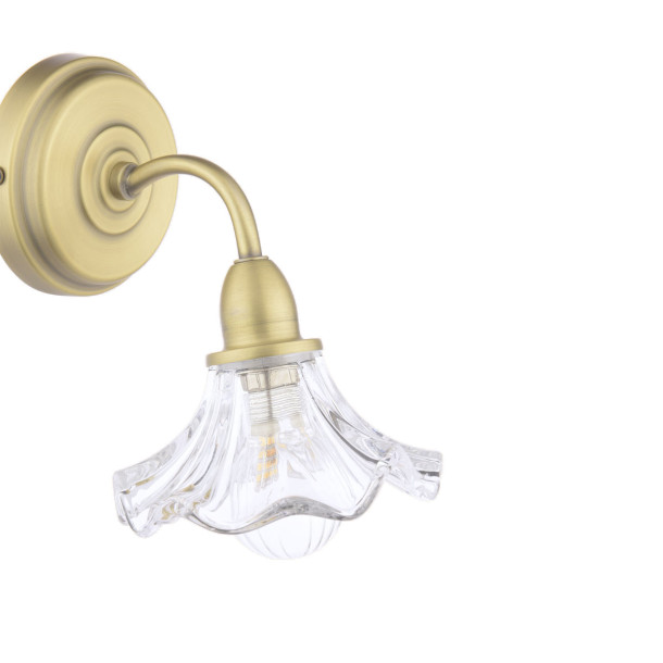 Vintage-style wall light with exposed bulb and matte brass finish. Warm glow for living rooms or bedrooms.