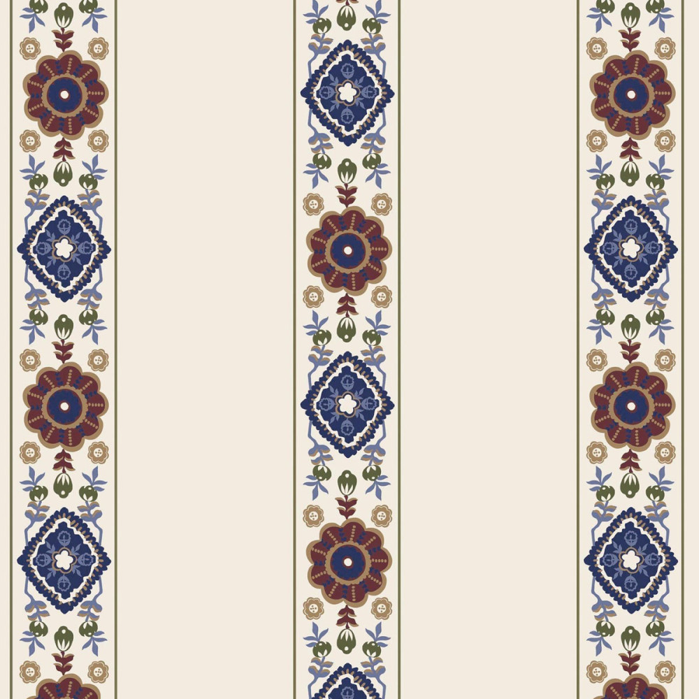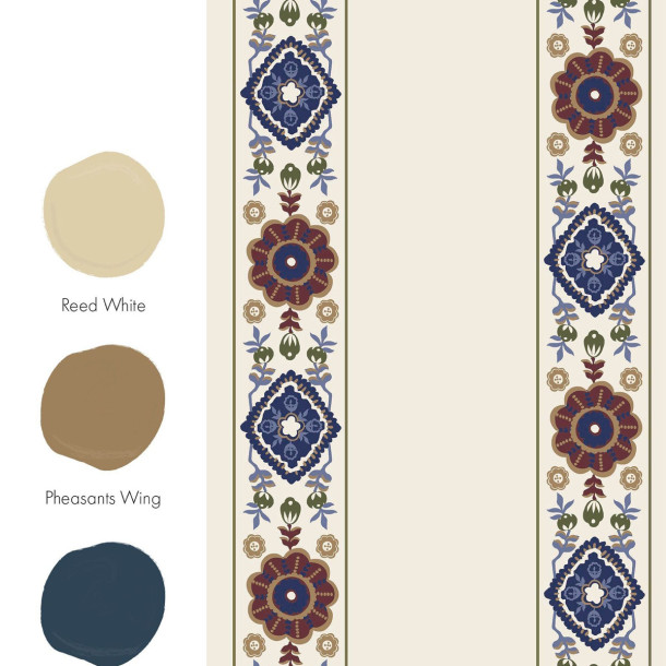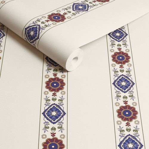 Borders inspired by the designs and textures of Persian rugs. printed wallpaper, coloured in Cream/Multi, from Joules collection.52 x 1000 cm Roll